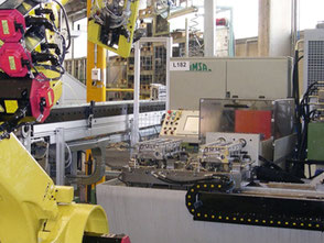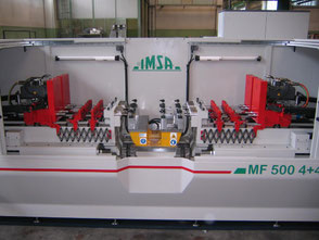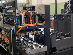 IMSA Beispiel einer Sonderanwendung Bohrmaschine. Anwendung: Bohren von Zylinderköpfen in Aluminium-Silikon-Legierungen. Maschine mit 4 + 4 entgegengesetzten Spindelköpfen, integriert in einer Produktionszelle.